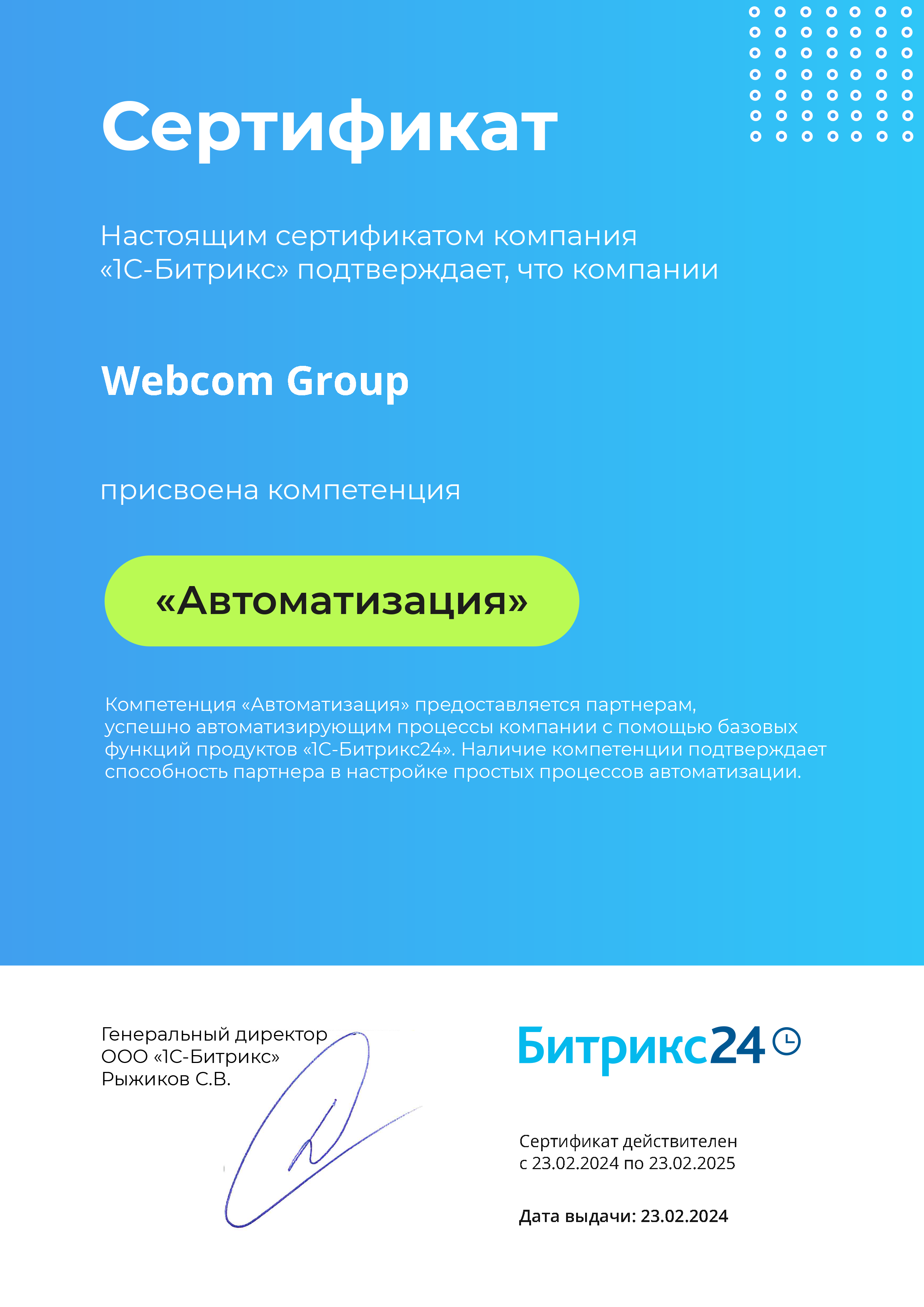 ВНЕДРЕНИЕ БИТРИКС24 ОТ ЗОЛОТОГО ПАРТНЕРА — WEBCOM GROUP